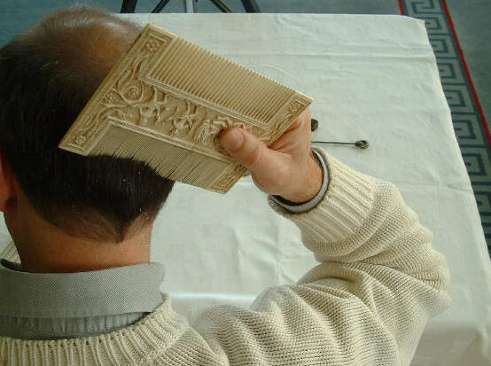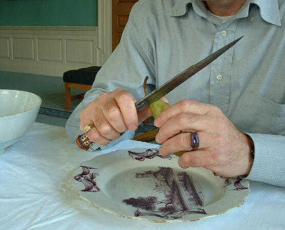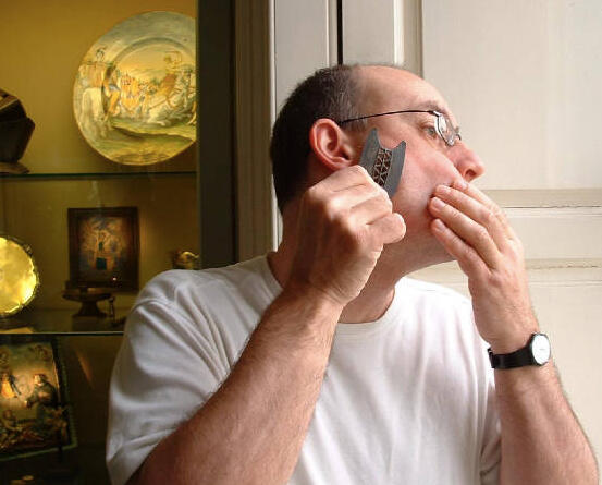 The Hunt Museum collection is a diverse group of objects, many of which were in use as domestic objects in the homes of the Hunt family. The idea that these objects were in a private house, treated as personal possessions, and in many cases used in accordance with their original intended usage, contrasts with their inevitable removal from usage as they become museum objects; yet they remain objects which visually convey the idea that they were made for physical use.The objects have changed their identities a number of times: made with specific intentions, which may be considered as their primary identity (1), mostly they then became stored, lost, hidden, used as decorative, treasure or grave goods (2), until their acquisition by the Hunt family (3), in many cases then reverting to their primary uses. On passing to the Hunt Museum they acquired a new identity as museum objects (4), for study or contemplation, referencing their roles at (2).Encounters with Objects comprises documented physical interaction with objects from the collection, in which the objects are treated as tools fulfilling the original purpose for which they were made. The work, a video of 8 short activities using selected objects, 8 photographic prints, and a number of text labels describing the experience of using the objects, tests the nature of the objects by re-using them in accordance with their original intended usages, including shaving with a Bronze Age razor, drinking from an 18th century cup, and combing hair with a mediaeval ivory comb.The work references a view of time as a helix along which points of repetition may be perceived creating lines of connection. It tests many ideas whose physical focus is the collection, including the nature of the projection of presence conveyed within the body of preserved objects, the nature and extent of the museum’s engagement with the objects, and how this relates to the Hunt family’s engagement with their collection. And for me, the whiole concept of intentionality - how do objects stop being 'museum objects' and become themselves as intended (which museums either avoid or fail to show)? One object that tests this clearly is a bronze age sword. How do you recreate the intention of a sword, what it really is?Well, I reckon that only a small part of the role of a sword is using it to kill someone. Its main role is to indicate to others and to the person holding or owning it that you/they have the power to kill someone. It is a power and status object. This is real when you are holding a sword. You look at yourself holding the sword. You test its weight and balance. You swish it. You know how it feels to have a sword in your hand. Believe me, it changes you.
